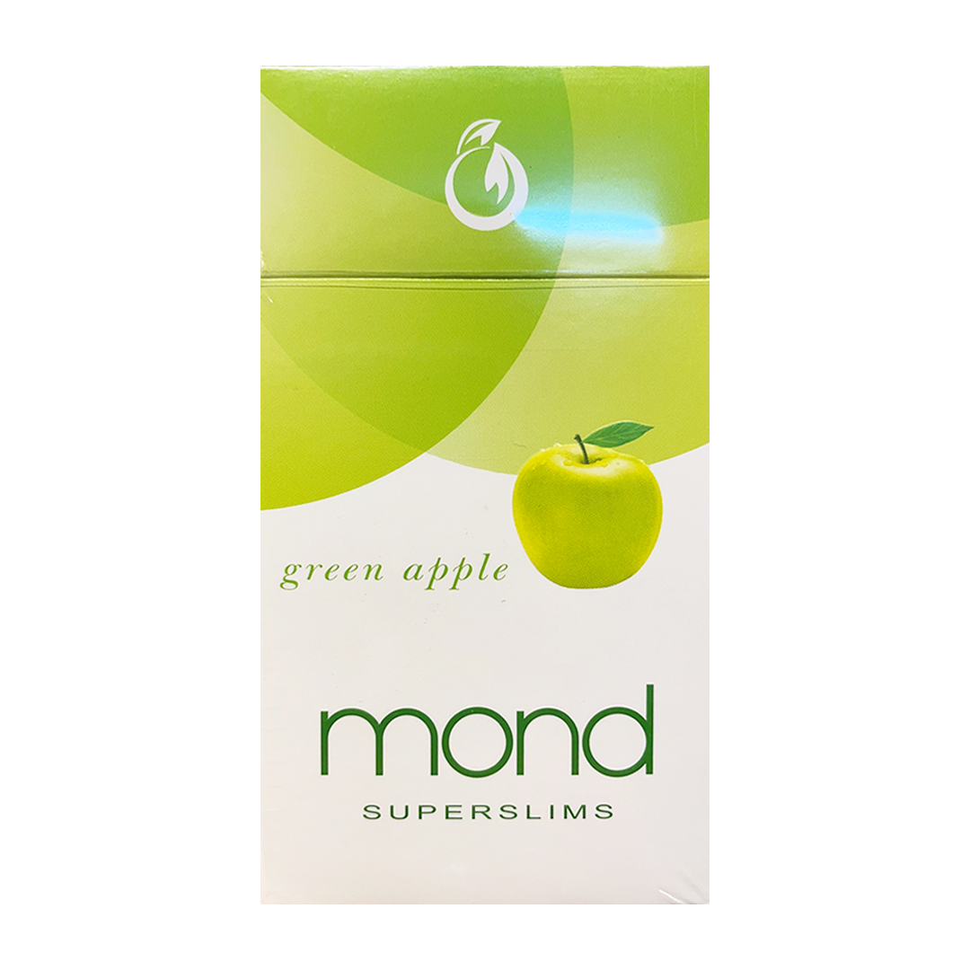 Mond Green Apple (slim) : บุหรี่คุณภาพเยี่ยมจากสหรัฐอาหรับเอมิเรตส์มวนบุหรี่สวยงาม ก้นกรองสีเขียวรสชาตินุ่มนวล หอมกลิ่นแอปเปิ้ลเขียว หอมสดชื่น